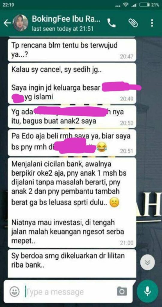 Suaminya seperti mualaf. Mereka buyer bersyukur bisa datang ke gathering walaupun ga ambil rumah…